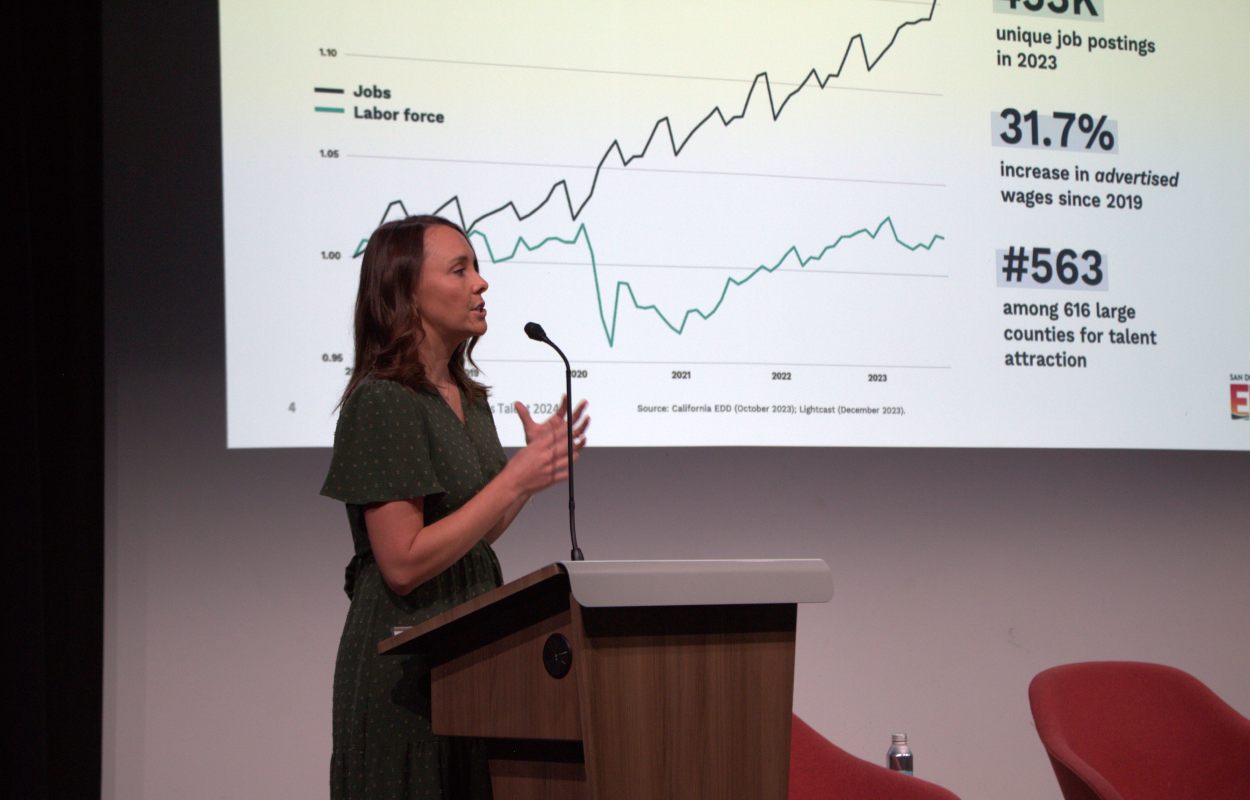 EDC shared stories from Cultura, SDSU, SDG&E, San Diego County Regional Airport Authority, and other organizations doing their part to advance the 2030 inclusive growth goals. The goal: Inspire other employers to invest in the local talent pipeline, buy from local small businesses, and develop solutions to create more thriving households across the region.
